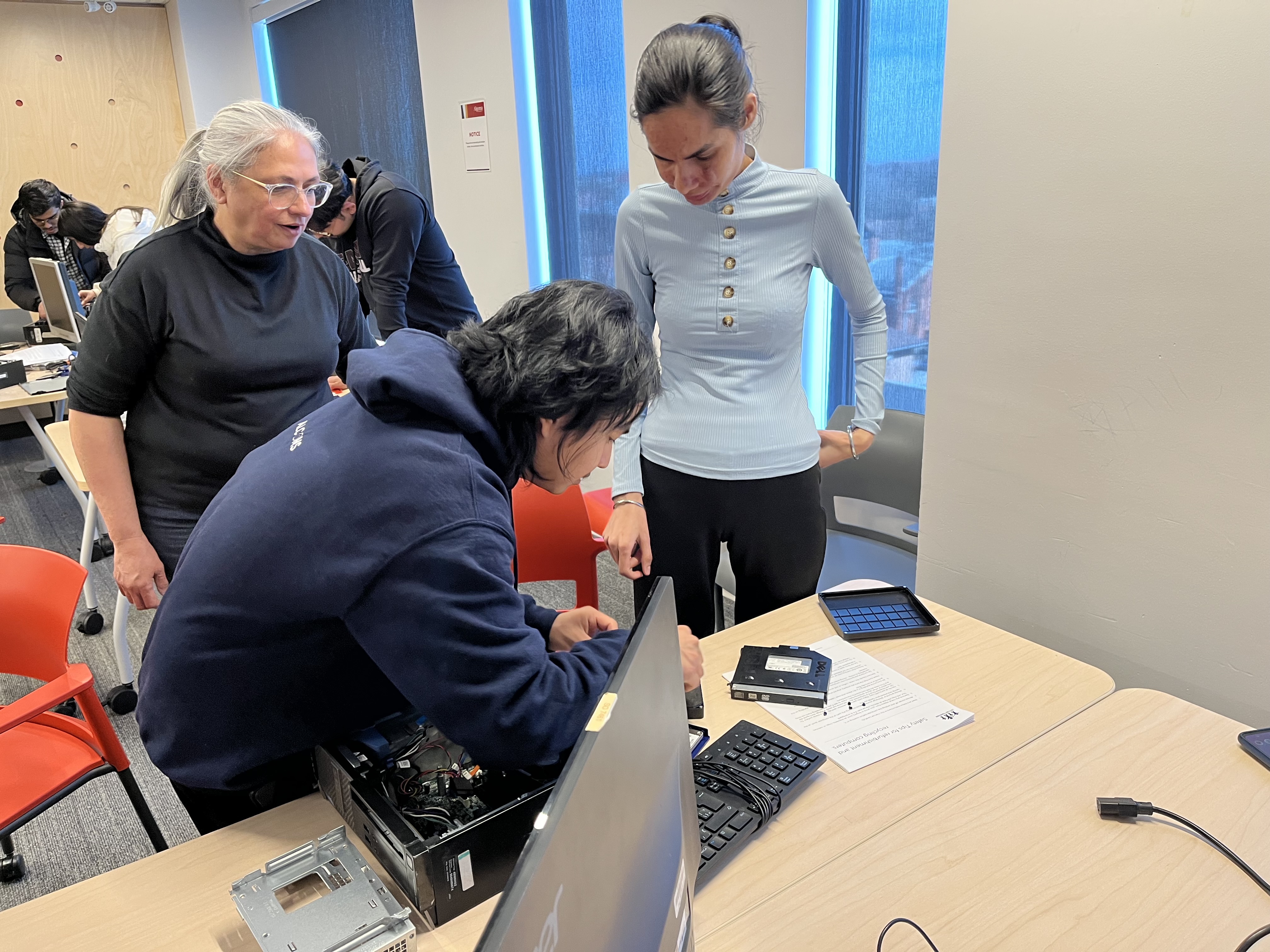 The workshop was structured into three modules: Computer Anatomy, Recycling and Refurbishing, and Checklist for Completed Work. In the Computer Anatomy module, participants learned about computer parts and their functions, gaining essential knowledge for repair work. The Recycling and Refurbishing module focused on ensuring privacy by removing old storage drives, upgrading laptops to include a minimum of 8GB of RAM, and replacing faulty components to restore functionality. The Checklist for Completed Work module helped participants systematically review their repairs to ensure quality. Additionally, safety protocols were thoroughly reviewed before the hands-on activities began. Participants were trained on using tools and equipment safely, provided with personal protective equipment (PPE), and instructed on maintaining clean workspaces. WHMIS guidelines were discussed to ensure safe handling of materials, emergency exits and first aid areas were outlined, and a safety monitor was assigned to oversee operations. These measures ensured that participants could confidently engage in repair activities while prioritizing safety.