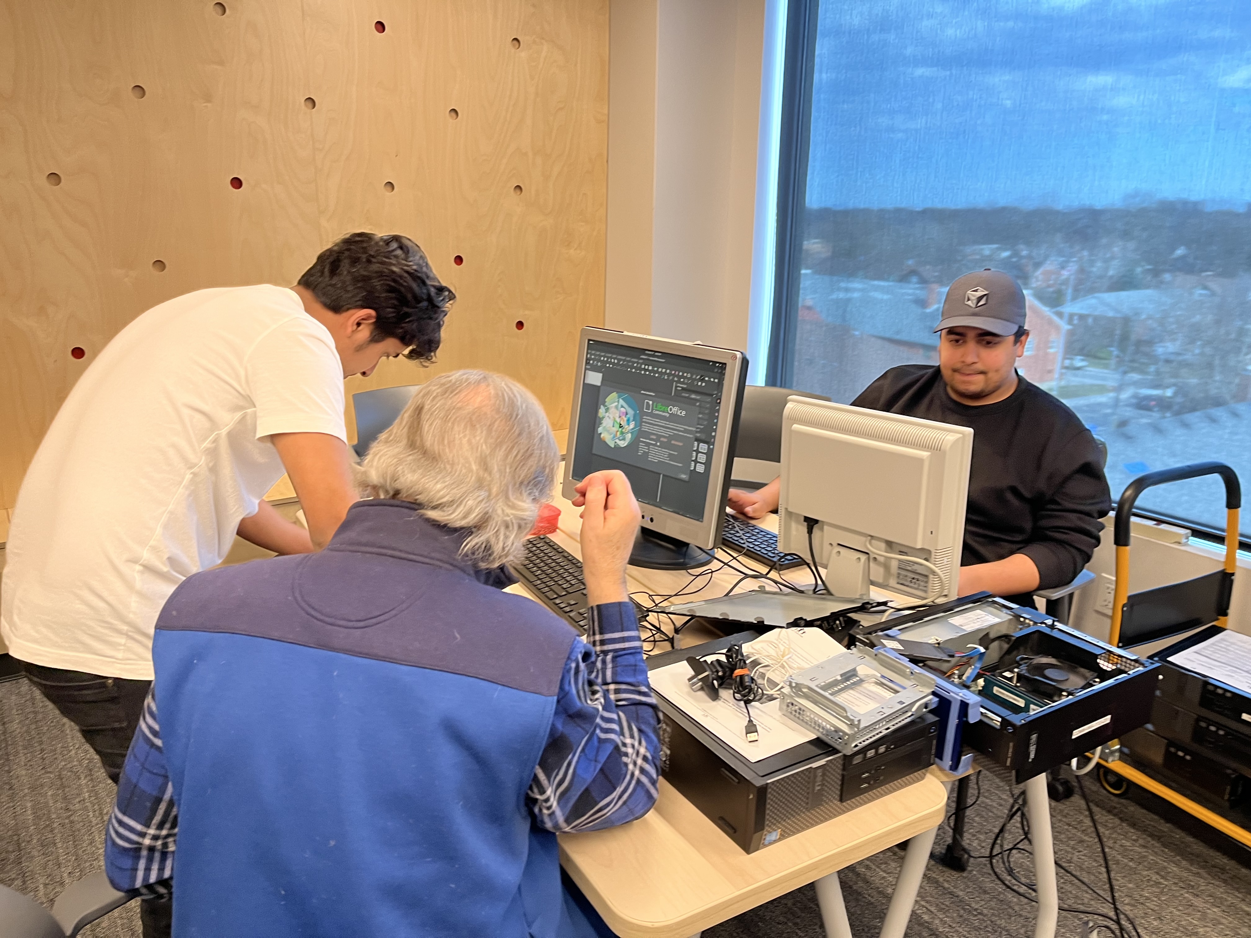 On March 27, 2025, Circuit Revival hosted the Let’s Get Together and Revive Circuits workshop at Algoma University, led by Alison Canning and Amy Kanal from Let’s Get Together Canada. This event aimed to equip students with practical skills in computer hardware assessment, refurbishment, and recycling to address digital inequities while promoting sustainability. Participants explored the concept of bridging the digital divide through hands-on activities that emphasized accessibility and environmental responsibility. Alison and Amy guided students in identifying reusable components, refurbishing laptops for redistribution, and responsibly recycling non-functional parts to minimize e-waste. These efforts aligned with Let’s Get Together Canada’s mission to make learning equitable and accessible while fostering a circular economy for technology.